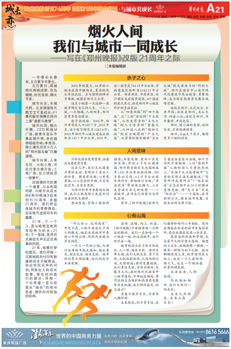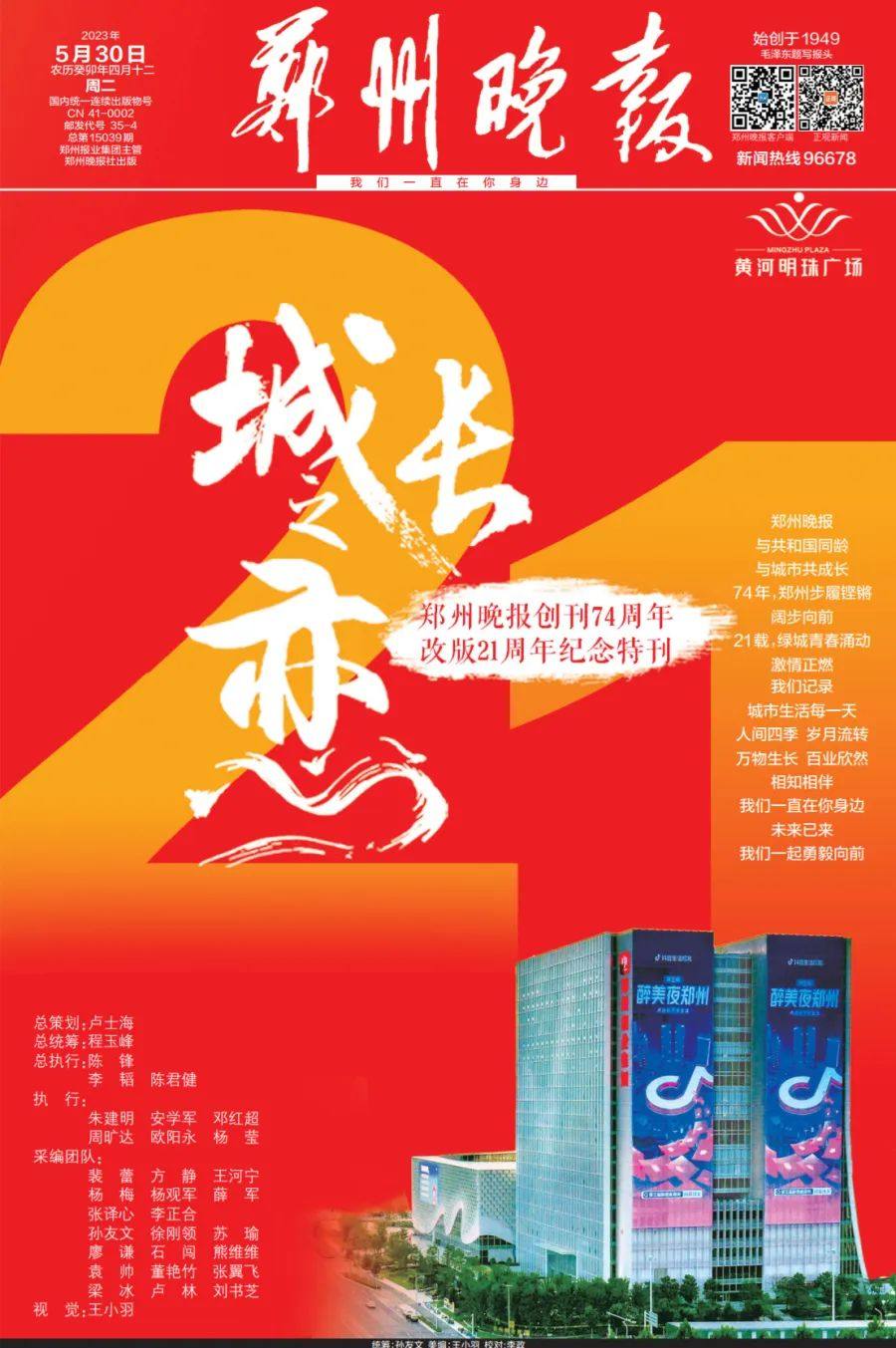 今日,郑州晚报推出创刊74周年改版21周年百版纪念特刊《城长之恋》