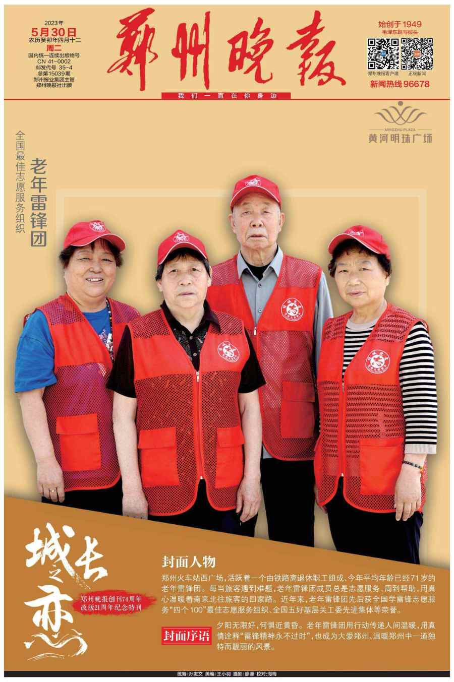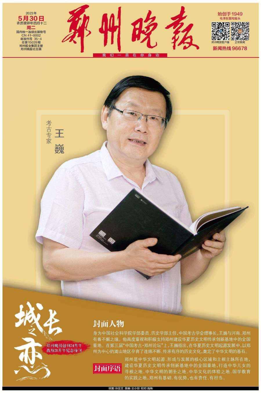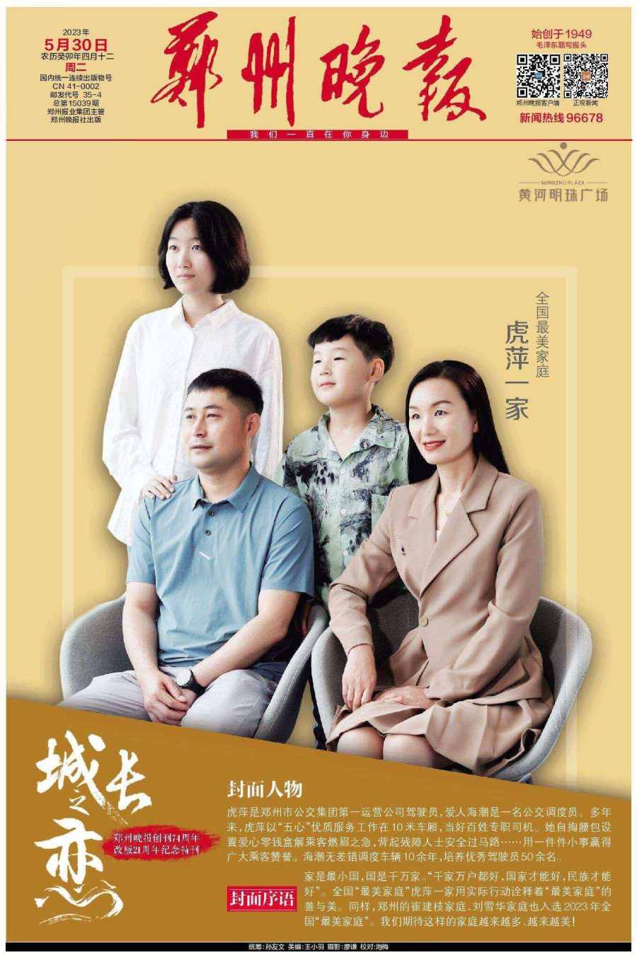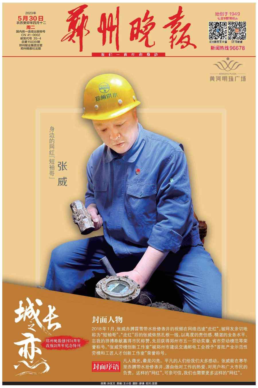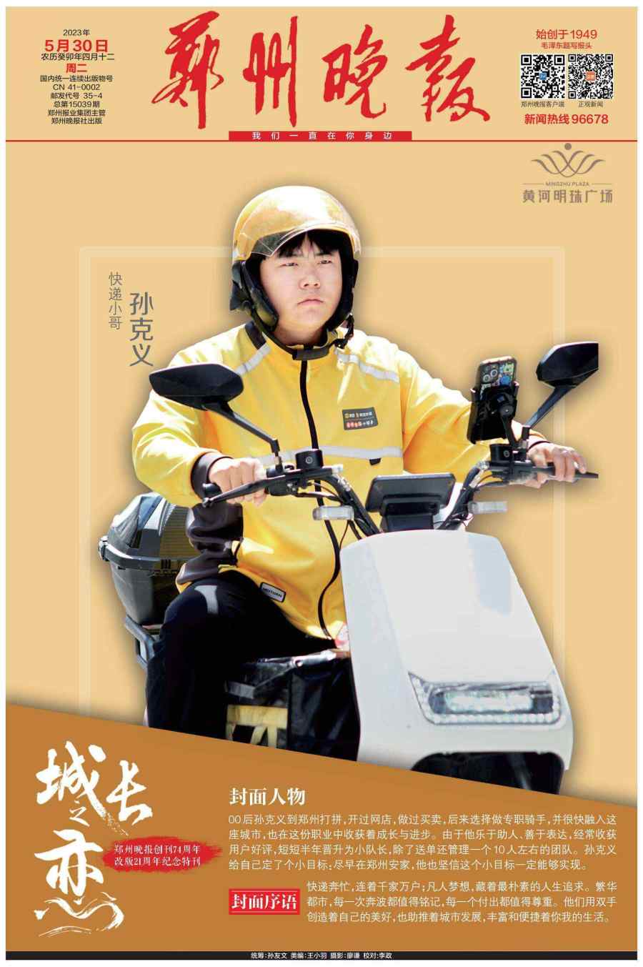 5月30日,郑州晚报重磅推出创刊74周年、改版21周年的百版特刊《城长之恋》,邀请21位行业领军人物登上郑州晚报的封面和郑州市区多个户外大屏。