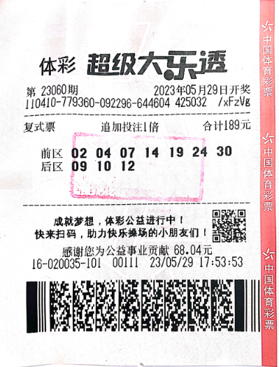 周口大奖得主张先生(化姓)的中奖彩票是一张7+3复式追加票,除1注一等奖及追加,还中得2注二等奖及追加、多注固定奖,总奖金1056万元。