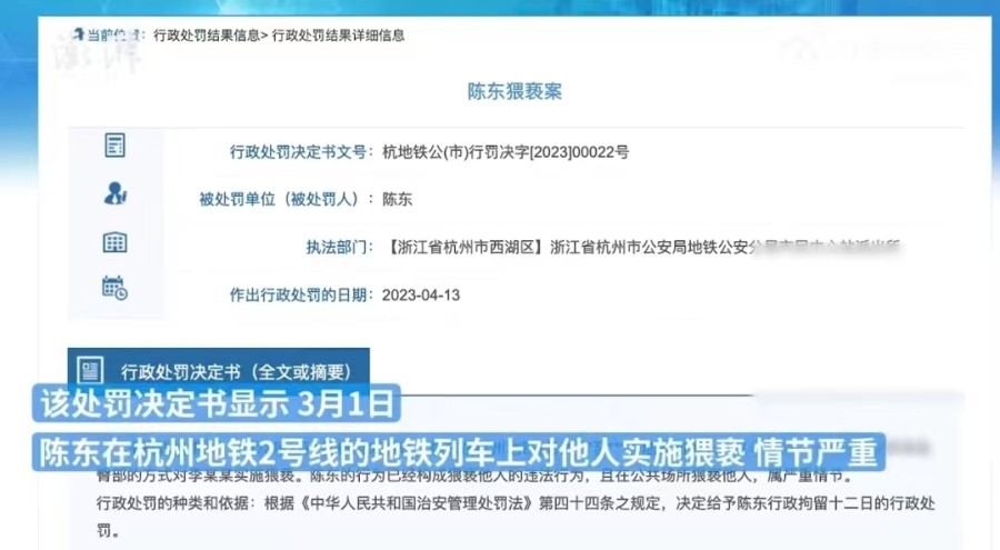 最近,两张关于“陈东”的截图引发网络关注。一张为“免去浙江省自然资源厅国土空间生态修复处处长陈东同志职务”的通知;另一张为行政处罚决定书,其中提及,3月1日,陈东在杭州地铁2号线路列车上对他人实施猥亵。经调查,两个“陈东”为同一人。(5月30日澎湃新闻)