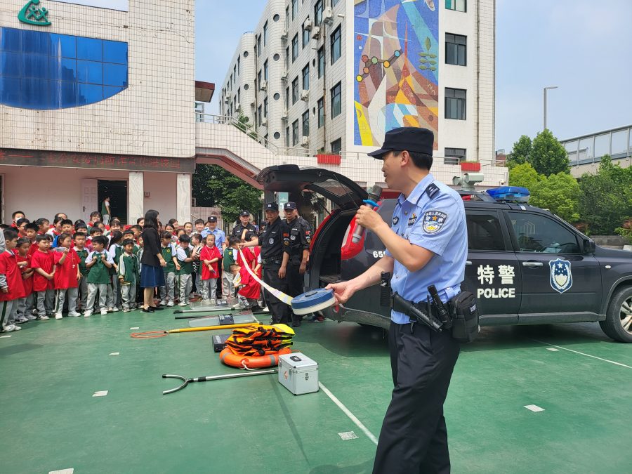 课堂活动结束后,分局禁毒大队的民警还带来了各种毒品模型,为孩子们讲解毒品的危害性,以提高他们的防范能力;巡特警大队的民警们通过展示警用装备、进行模拟抓捕演练等形式让孩子们大开眼界,用现场体验的形式感受遇到危险和突发情况时该怎么办?