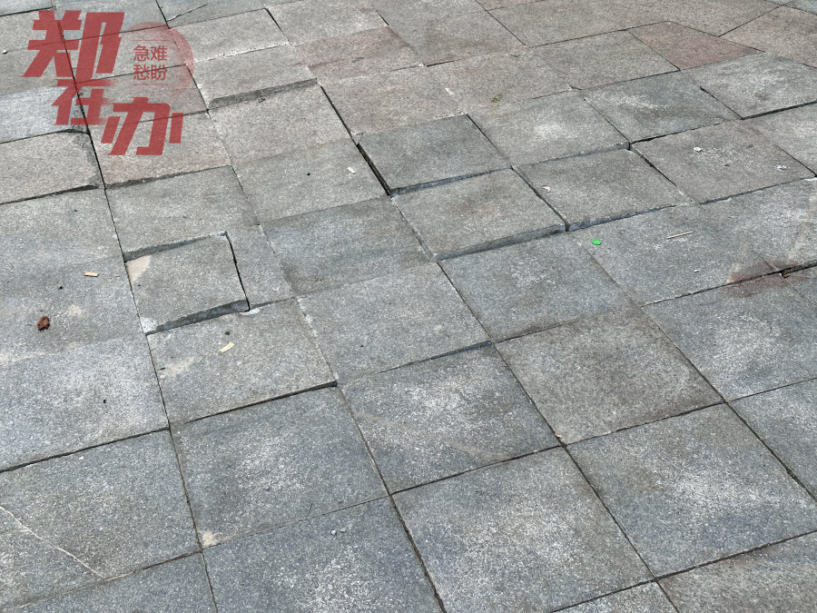 “附近有幼儿园,小孩经过很容易摔跤。我就住在这附近,以前我家小孩踢到烂地砖摔倒过一次,所以现在带小孩出来时,都会仔细看着小孩别再走到这些地砖上了。”程先生说,这里的人行道地砖破损已经有一段时间了,坑坑洼洼,路过时注意力不集中,就容易被破损的地砖绊倒。