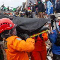 由印尼国家抗灾署、印尼国民军和警察、国家搜救局、当地卫生机构人员和志愿者组成的联合救援队正在紧张搜救被埋在废墟下的幸存者。