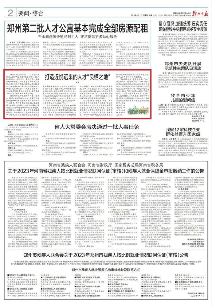 功以才成,业由才广。人才是第一资源,是城市发展的“智力引擎”。能不能吸引人才、留住人才,考验的是一座城市的管理智慧。毕业季求职高峰来临之际,2023年郑州市第二批次人才公寓基本完成房源配租,第二批郑州青年人才驿站正式启动运营——我市全力解决人才来郑、留郑发展的后顾之忧,全力营造“近悦远来”的人才发展生态环境。
