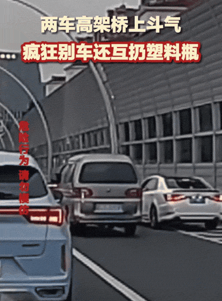 这次是在某高架桥匝道汇入口,主路上行驶的面包车一个别车动作,导致匝道汇入的小轿车差点撞到护栏。“气不过”的小轿车一脚油门加速超过面包车。面包车又追赶小轿车,并从车窗扔出塑料瓶,还扔进了车里。随后,轿车又扔了回去。据澎湃新闻6月2日报道,目前,两车司机已被警方行政拘留。