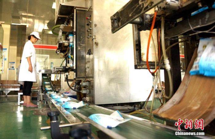 食盐经过自动包装机进行包装后装箱入库。 王昊阳 摄