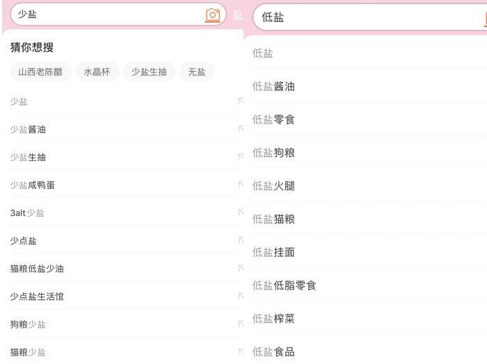 淘宝搜索“少盐”“低盐”,宠物食品反而关联更多。