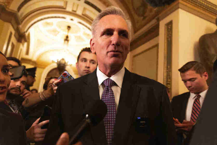 5月31日,在美国华盛顿,众议院共和党籍议长麦卡锡回答媒体提问。(新华社发,亚伦摄)
