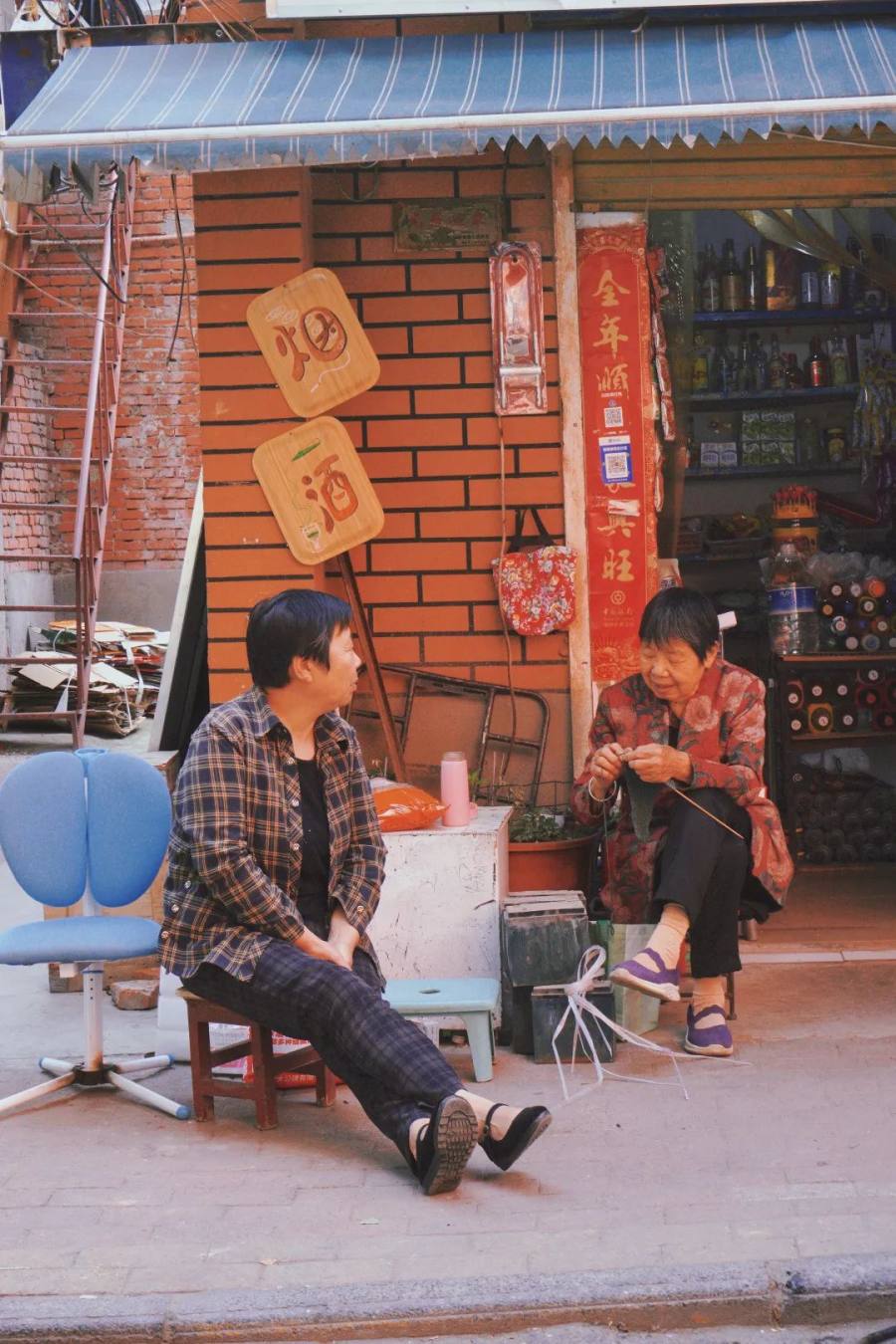 天气晴朗的下午,老爷爷和老奶奶都会搬着小马扎坐在路边,看络绎不绝的年轻人四处拍照。