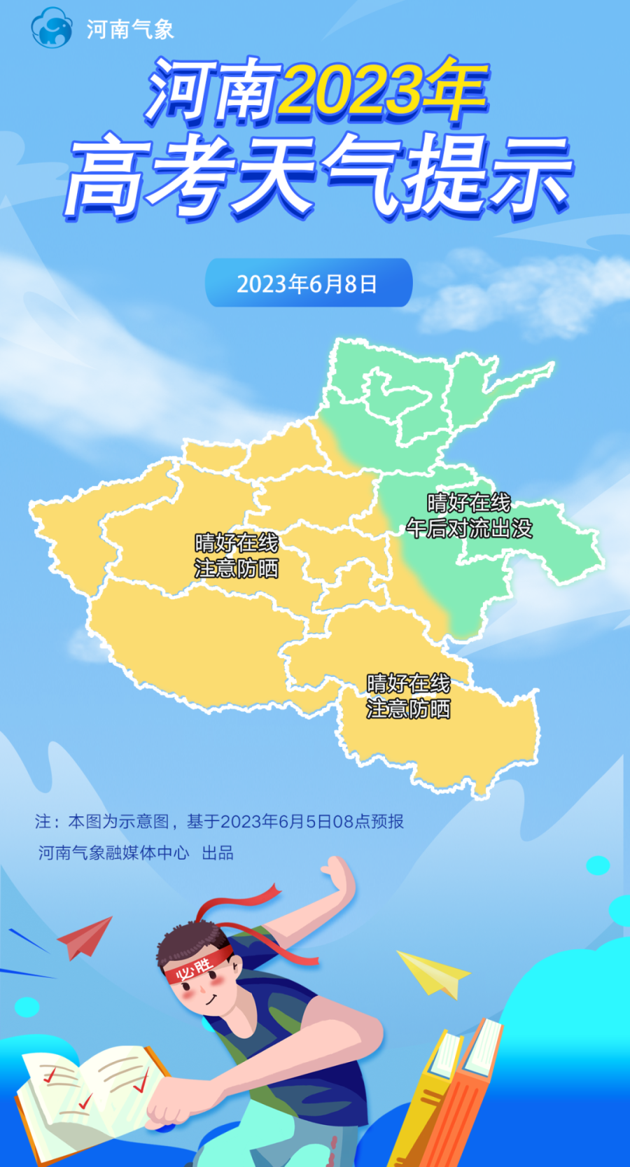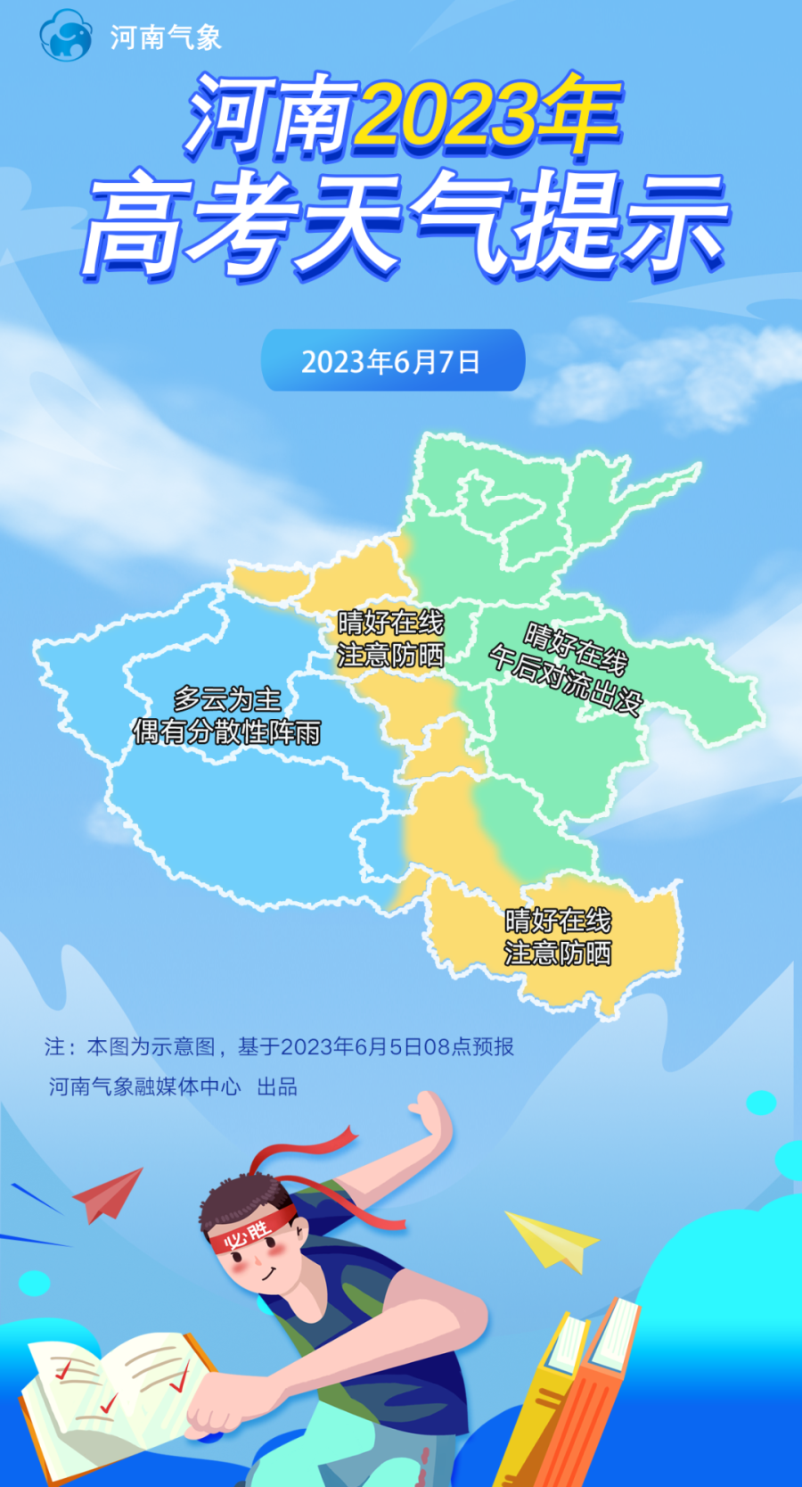 6日,东北部晴天到多云,傍晚到夜里,濮阳、安阳东部局部有短时雷阵雨;其他县市晴天间多云。