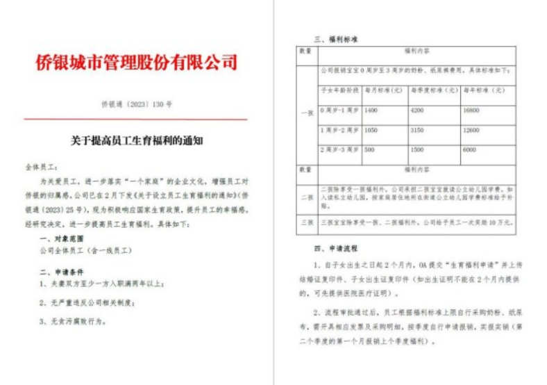 这是什么神仙公司!生一孩,报销0-3周岁期间的奶粉、纸尿裤等费用;生二孩,除了报销奶粉、纸尿裤,还报销公立幼儿园学费;要是生三孩,在前面福利的基础上,再一次性奖励10万元。
