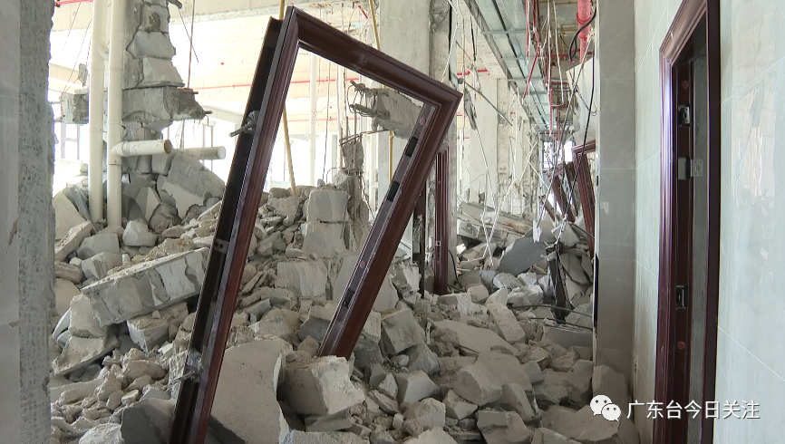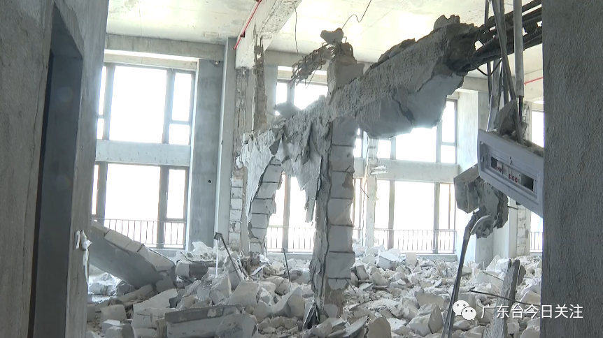 4日记者来到肇庆四会市当事公寓,在二楼位置看到,现场真的可以用“满目疮痍”来形容,多面墙体被打掉,多条柱子被截断,裸露出钢筋。