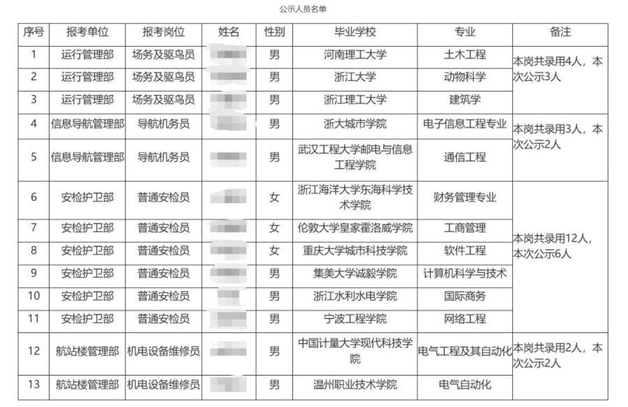 近日,温州机场集团发布的2023年春季招聘拟录用人员公示引发热议。