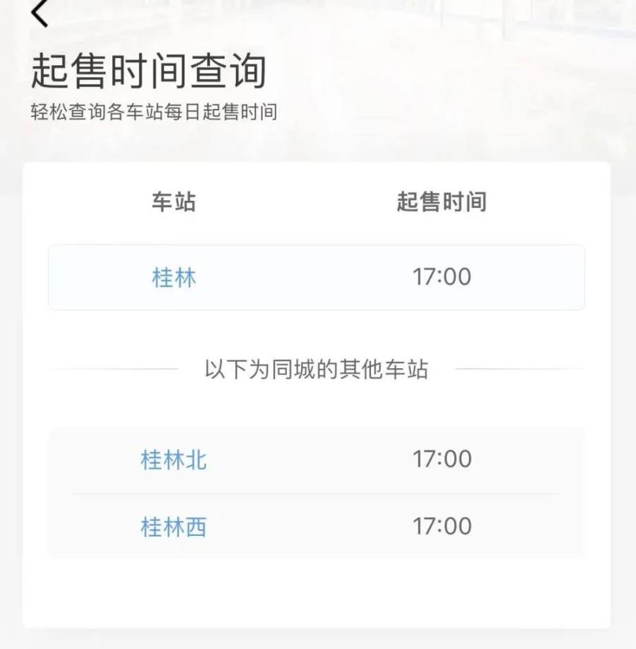 柳州、桂林等站的起售时间