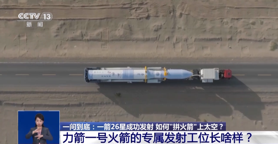 力箭一号运载火箭副总设计师 胡小伟:我们这个实际上是一个简易的发射场地,我们整个的发射装置也比较简单,是一个水平总装、水平运输、水平测试、垂直发射这种“三平”的模式。