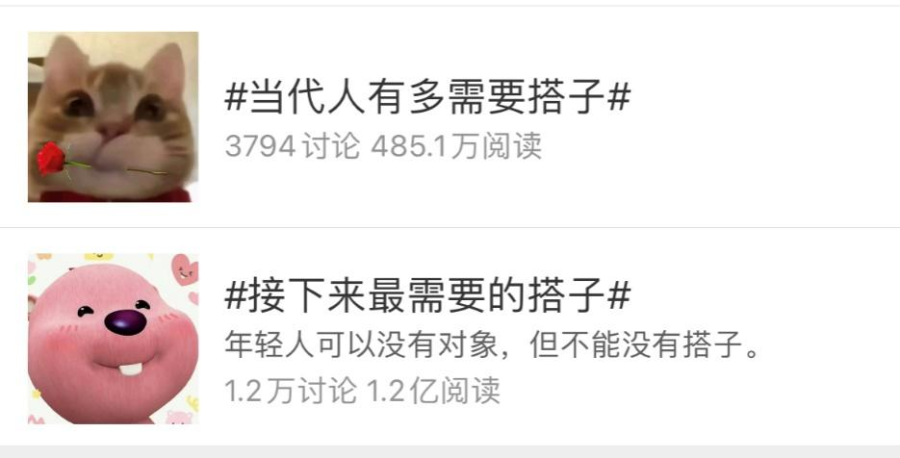 随着“饭搭子”“旅游搭子”“音乐节搭子”“健身房搭子”等关键词冲上热搜,各式各样的“搭子”开始走入人们的视野,在青年群体中引发“找搭子”热潮。在网络上,“搭子”被定义为因某一共同兴趣爱好或需求而结合成的社会关系,处于陌生人之上,朋友之下,主打的是细分领域的精准陪伴。社交平台中,“新型社交关系搭子”的话题浏览量超过3000万次,“饭搭子”话题浏览量更高达1.4亿次。