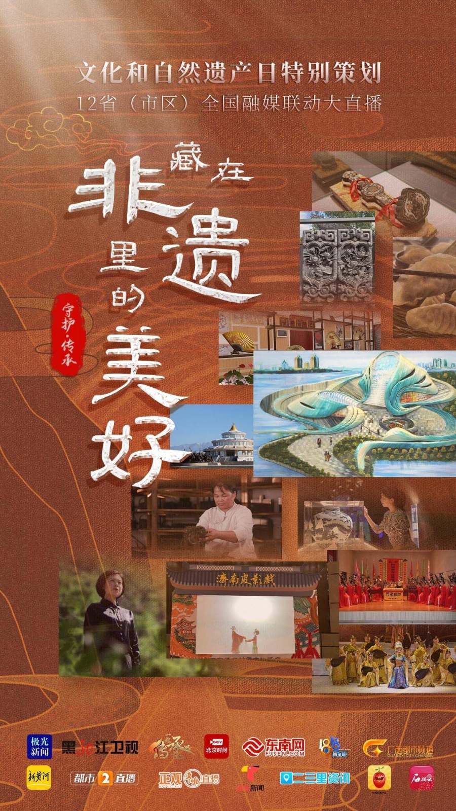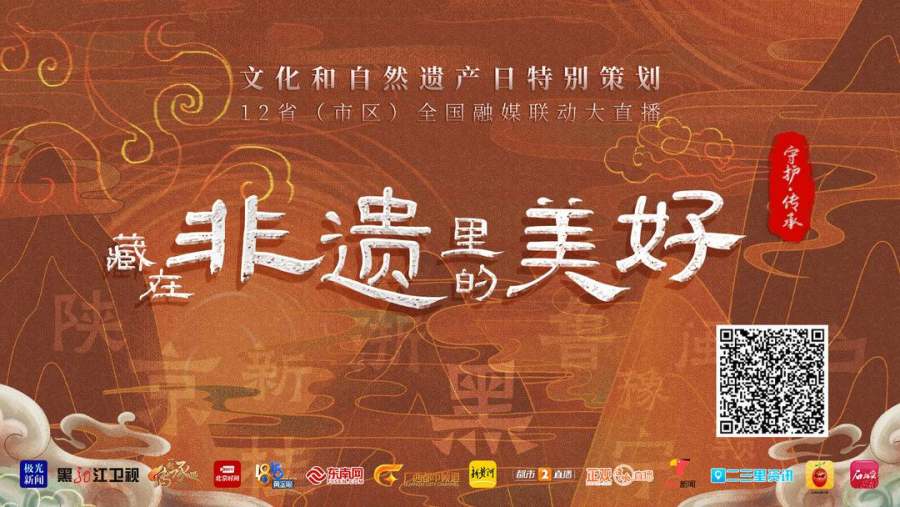 2023年6月10日上午9点,由黑龙江广播电视台极光新闻发起,联动北京广播电视台BRTV北京时间、华商传媒集团二三里资讯、新疆日报石榴云、宁夏广播电视台红枸杞客户端、郑州报业集团正观新闻、新黄河客户端、 广东广播电视台触电新闻、浙江广播电视集团1818黄金眼、江西广播电视台都市频道、福建日报社东南网、广西广播电视台都市频道,推出大型直播《文化和自然遗产日|守护·传承 藏在非遗里的美好》,通过直播形式展现各地非遗保护传承的丰硕成果,从文化、历史、可持续等不同角度,弘扬非遗的时代价值,展现非遗的时代风采,领略中华优秀传统文化的魅力,寻觅藏在非遗里的美好。
