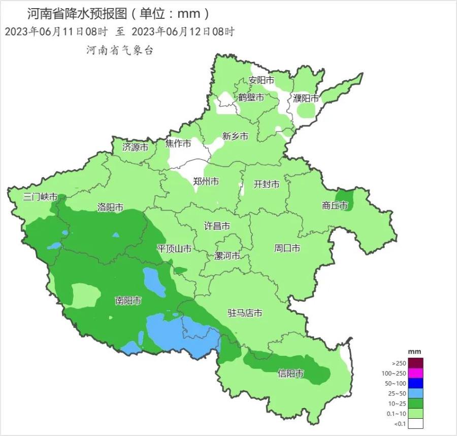 全省大部分县市有分散性阵雨、雷阵雨,雨量分布不均,其中三门峡南部、洛阳南部、平顶山、南阳、驻马店、信阳部分县市有中到大雨,并伴有雷暴大风、短时强降水、局地冰雹等强对流天气