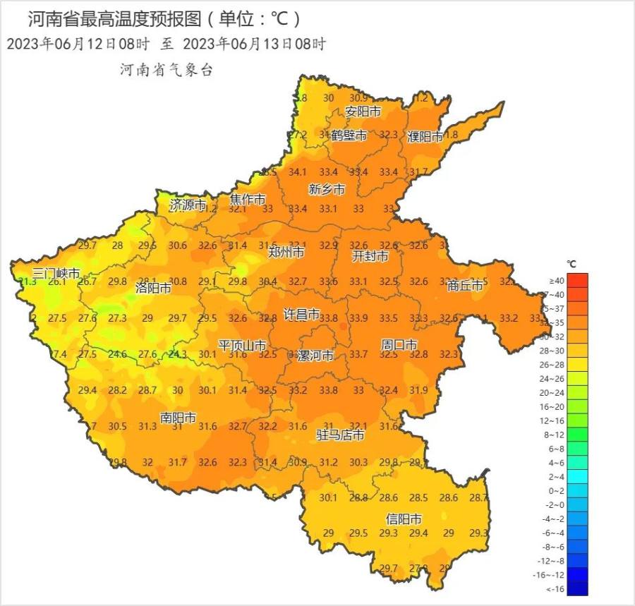 三门峡、洛阳、南阳、信阳、驻马店南部有阵雨、雷阵雨,局部伴有短时强降水、雷暴大风等强对流天气;其他县市有分散性阵雨、雷阵雨