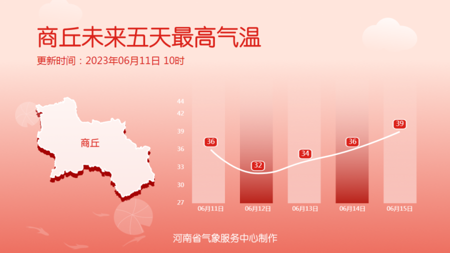 13日,全省多云,中西部有分散性阵雨、雷阵雨。