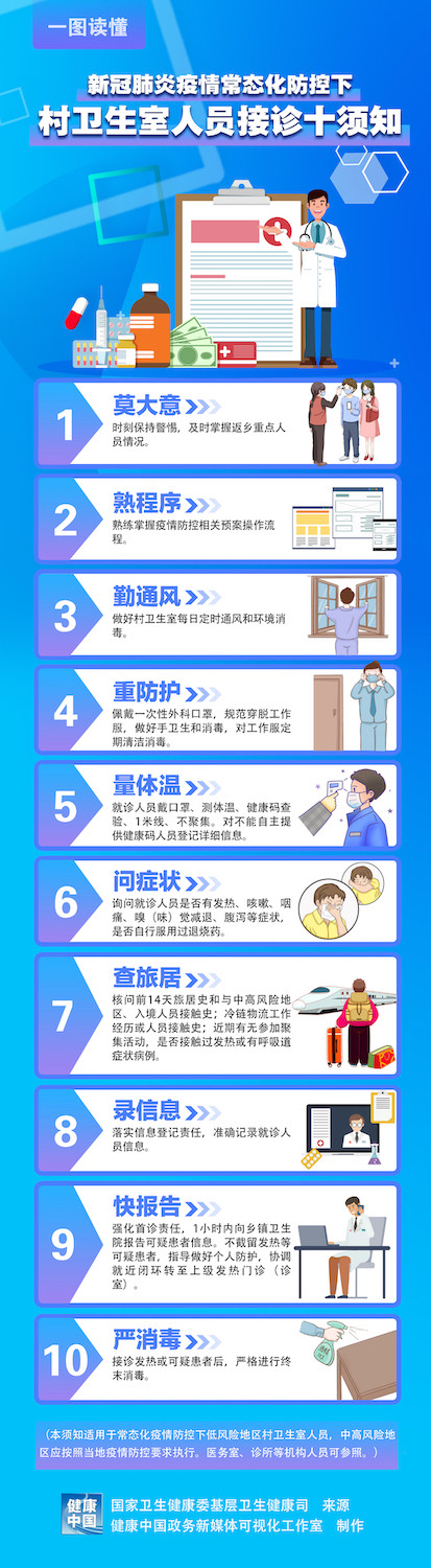 国家卫健委下发《新冠肺炎疫情常态化防控下村卫生室人员接诊十须知》