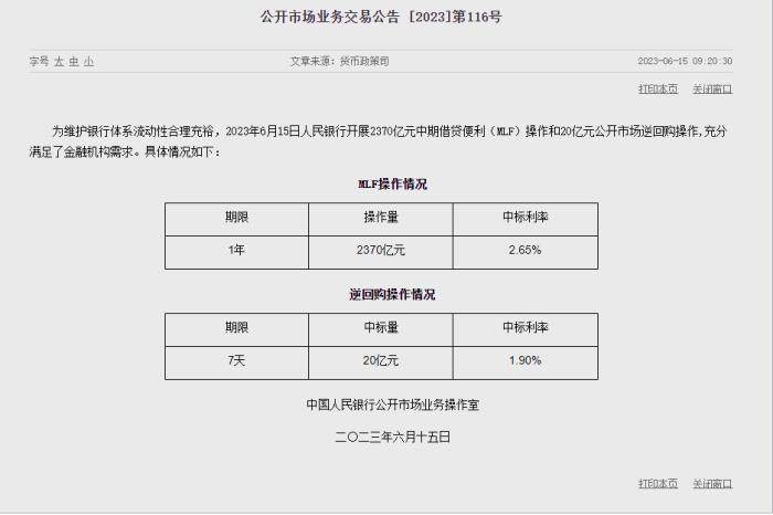 6月15日,7天逆回购操作利率和MLF利率。