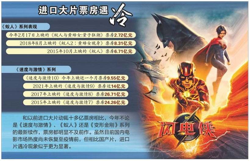 但和以前进口大片动辄十多亿票房相比,今年不论是《速度与激情》、《蚁人》还是《变形金刚》系列的最新续作,票房都明显不及前作。虽然目前国内电影市场热度尚未恢复至疫情前,但相比国产片,进口片遇冷现象似乎更为显著。