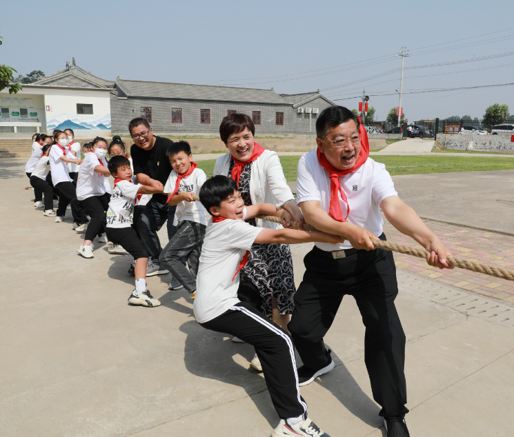 简短的仪式结束后,孩子们和现场嘉宾开始了一场拔河比赛,随着一声哨响,震耳欲聋的加油声响彻了整个操场。
