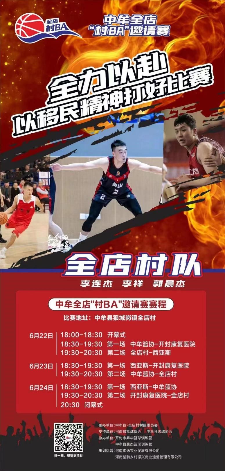 此次比赛将于6月22日晚6点在全店村篮球场正式开打,当晚举行开幕式及两场邀请赛。整个赛程持续三天,贯穿端午假期,每晚6点开始,每天两场,6月24日结束。