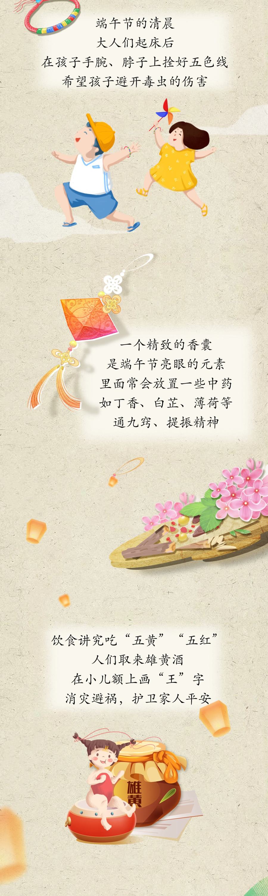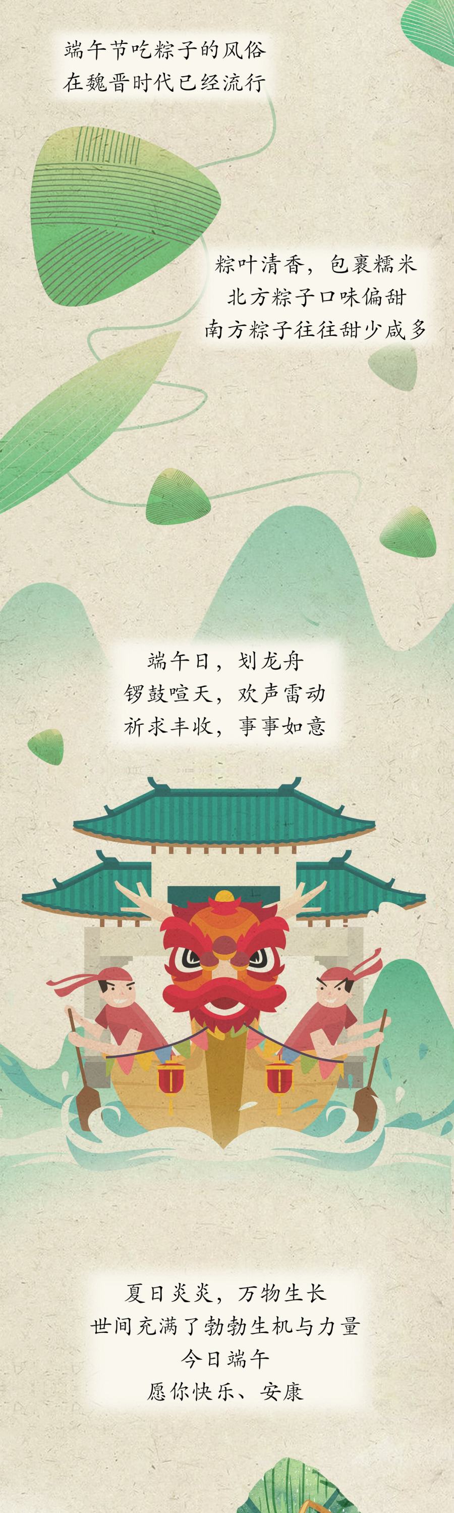 一年一端午,一岁一安康。吃粽子、赛龙舟、插艾草,手腕系五色线,用雄黄酒在额头画个“王”…… 中国人过节总是仪式感满满,一个个小细节,是爱,是传承,也是对美好生活的期许。佳节又至,无论甜或咸,无论近或远,记得对关心的人道一声“安康”:愿岁岁年年,平安吉祥!