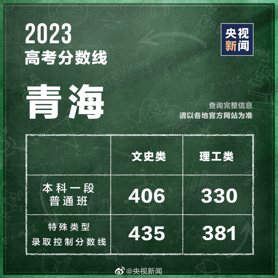 查询链接:青海省高等学校招生委员会发布2023年普通高等学校在青招生录取控制分数线