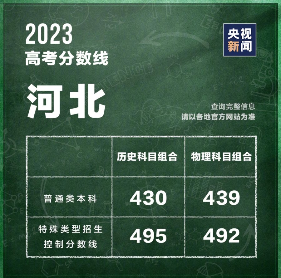 查询链接:河北省2023年普通高校招生各批各类录取控制分数线