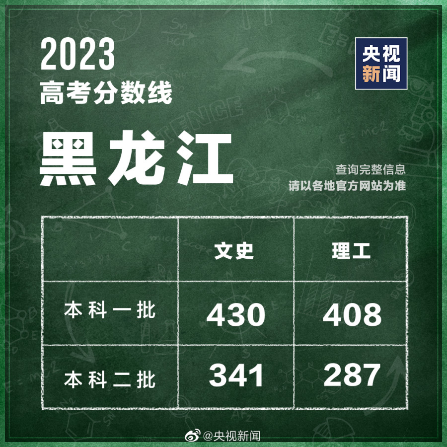 查询链接:2023年黑龙江省高考录取控制分数线划定