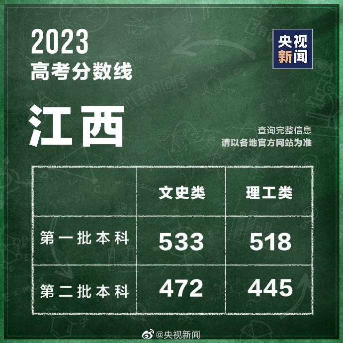 查询链接:江西省2023年高招文史、理工类各批次文化录取控制分数线