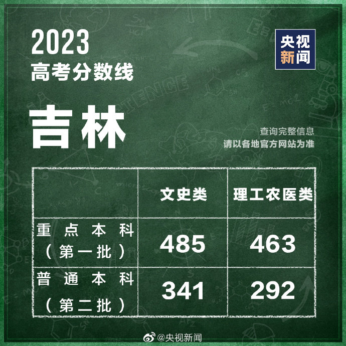 查询链接:2023年吉林省普通高考本专科各批次录取最低控制分数线