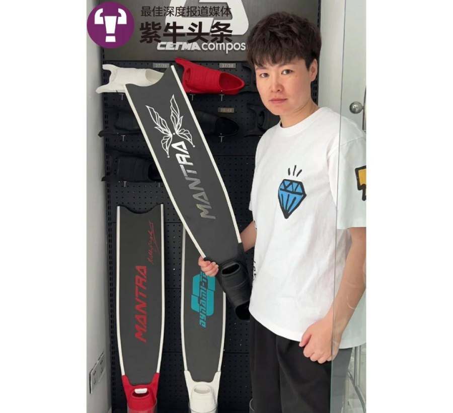 徐童彤获得CWT(恒重单蹼)下潜100⽶的好成绩
