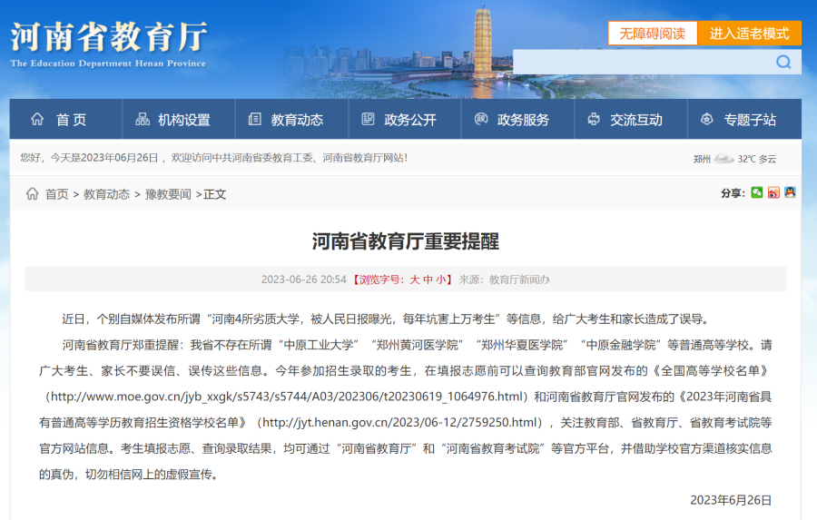 河南省教育厅:注意!我省不存在这4所大学