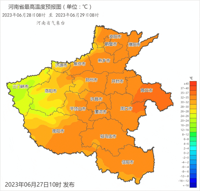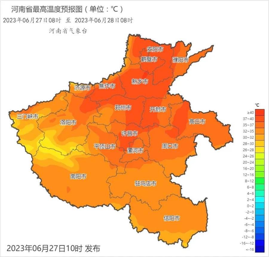 27日下午到夜里,全省晴天间多云。傍晚到夜里,西部、西北部、东南部多云间阴天,安阳西部、济源、三门峡、洛阳、南阳北部、信阳南部有分散性阵雨、雷阵雨;其他县市晴天转多云。今天北中部最高气温36到38度,北部局部39到40度。