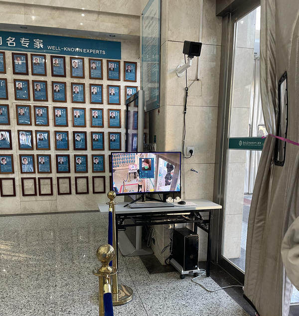 来到郑州大学附属郑州中心医院,记者注意到,与红外线测温仪一体的还有一面电子显示屏,屏幕会实时记录每一位入院人员体温以及人流量等数据。据预检分诊处工作人员介绍,“在门诊入口处,左上方的探测头是红外线人体测温仪,而右上方的则是环境测温仪,用于校准测量结果,最大程度保证测温的准确性。