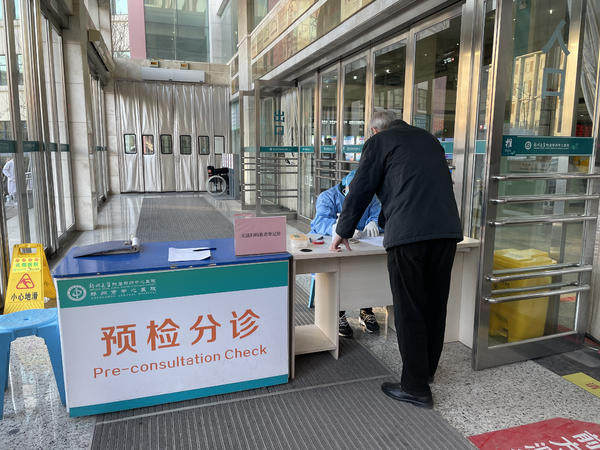 在郑州市第六人民医院预检分诊处,工作人员会问询每一位就诊市民的行动轨迹和身体症状。对于无法用手机扫码的市民,实行现场登记制,入院人员留下个人实名制信息,签署个人承诺书,确认无异常后方可正常入院。