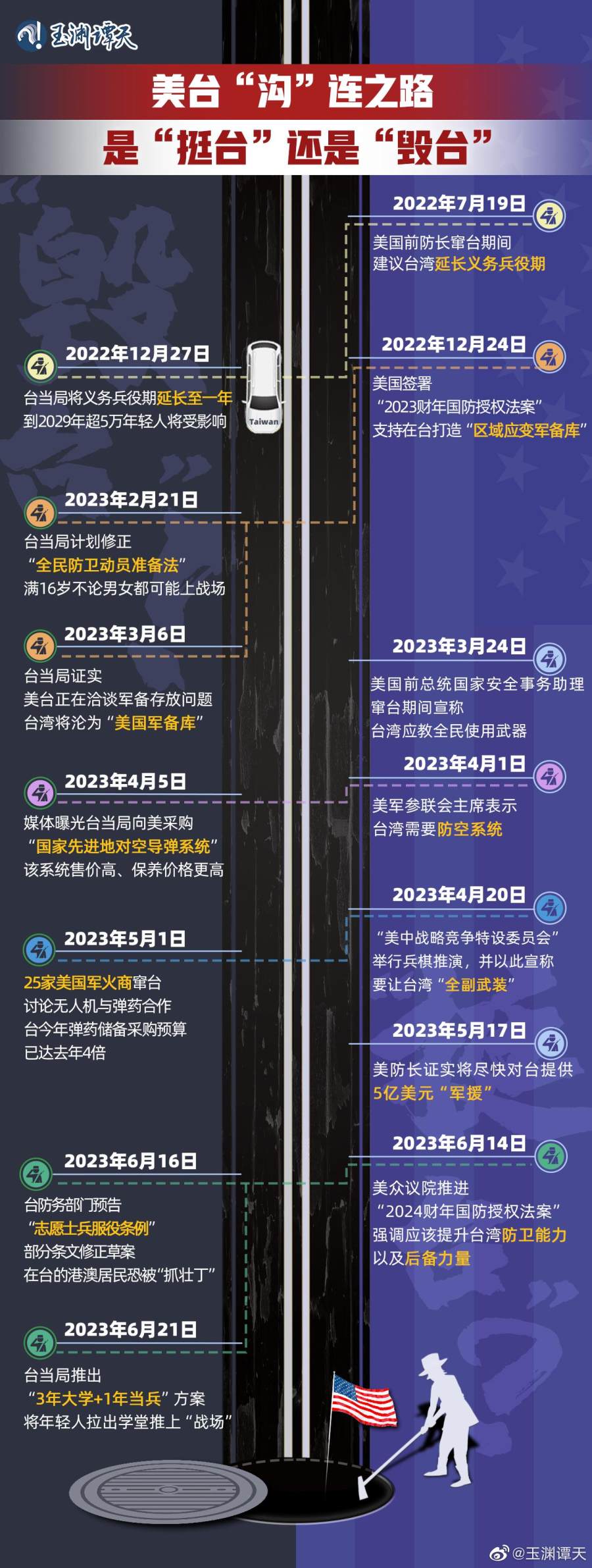 从军售到“全民防卫”,美国不断给台湾提出看似“挺台”的建议,但频繁勾连的结局,是年轻人被拉上“战场”,台湾被拉进沟里。