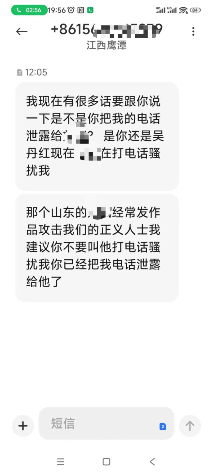 赵德芳称,该威胁电话后续还有拨打,但他没有再接,6月28日中午,他收到该电话号码发来的短信,责怪赵德芳将其电话泄露出去,造成其被骚扰。此人还自称为“正义人士”。