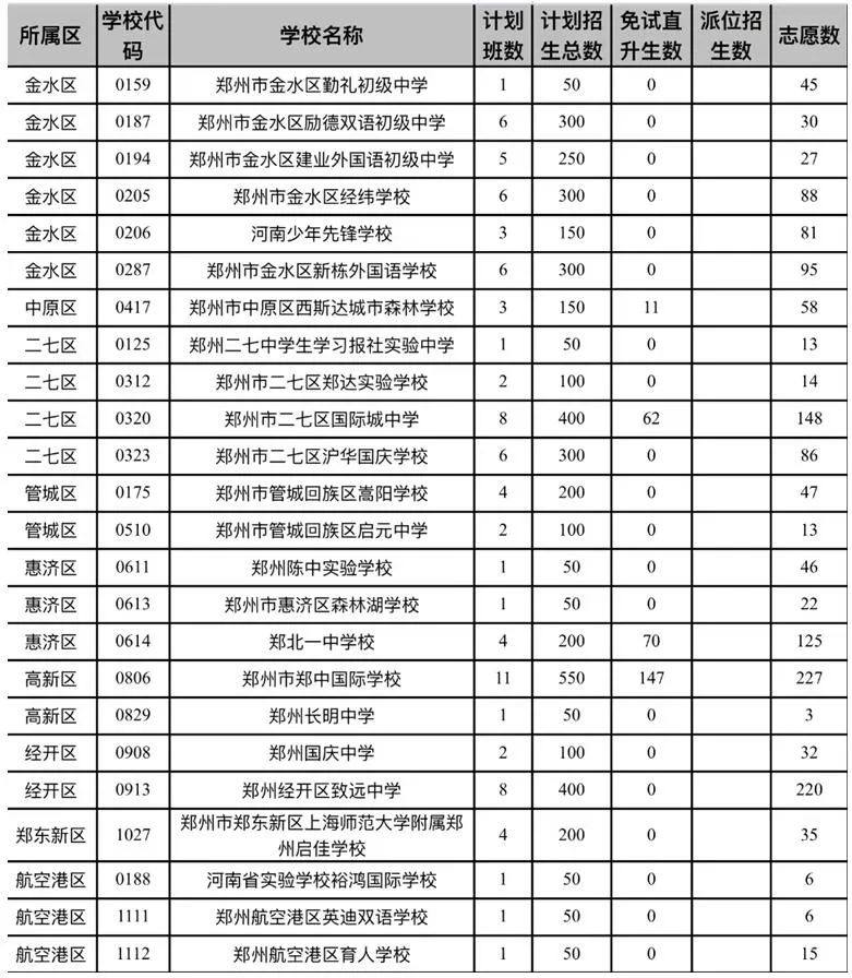 首先进行派位的是郑州市金水区新奇初级中学,该学校计划招生500人,其中直升生占用招生计划42人,报名人数899人,实际派位招生录取458人。