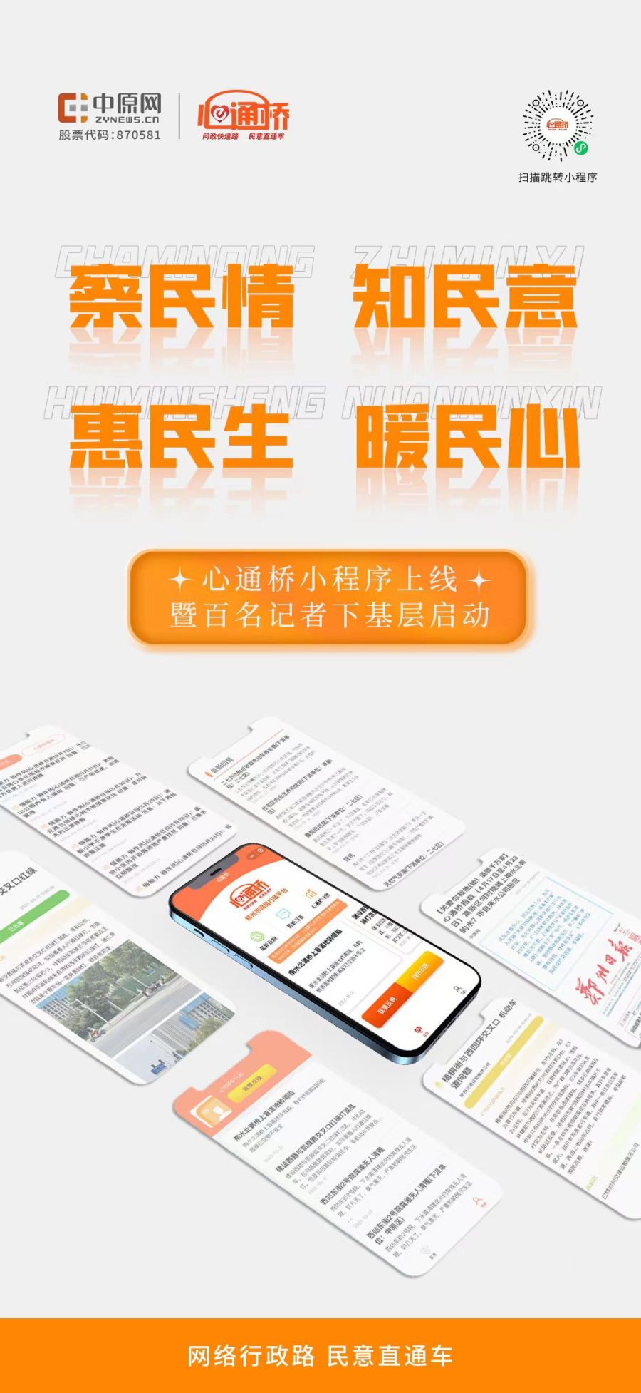 作为郑州市网络行政全媒体平台,心通桥坚持走好网上群众路线。此次心通桥小程序的上线,采用轻量化,方便快捷的登录方式,广大网友只需通过微信上搜索“心通桥”小程序即可一键登录。