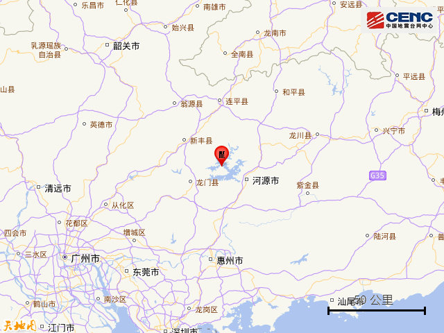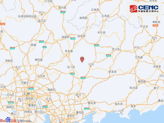 此前,据中国地震台网正式测定,7月3日20时57分在广东河源市东源县发生3.7级地震,震源深度9公里,震中位于北纬23.85度,东经114.50度。