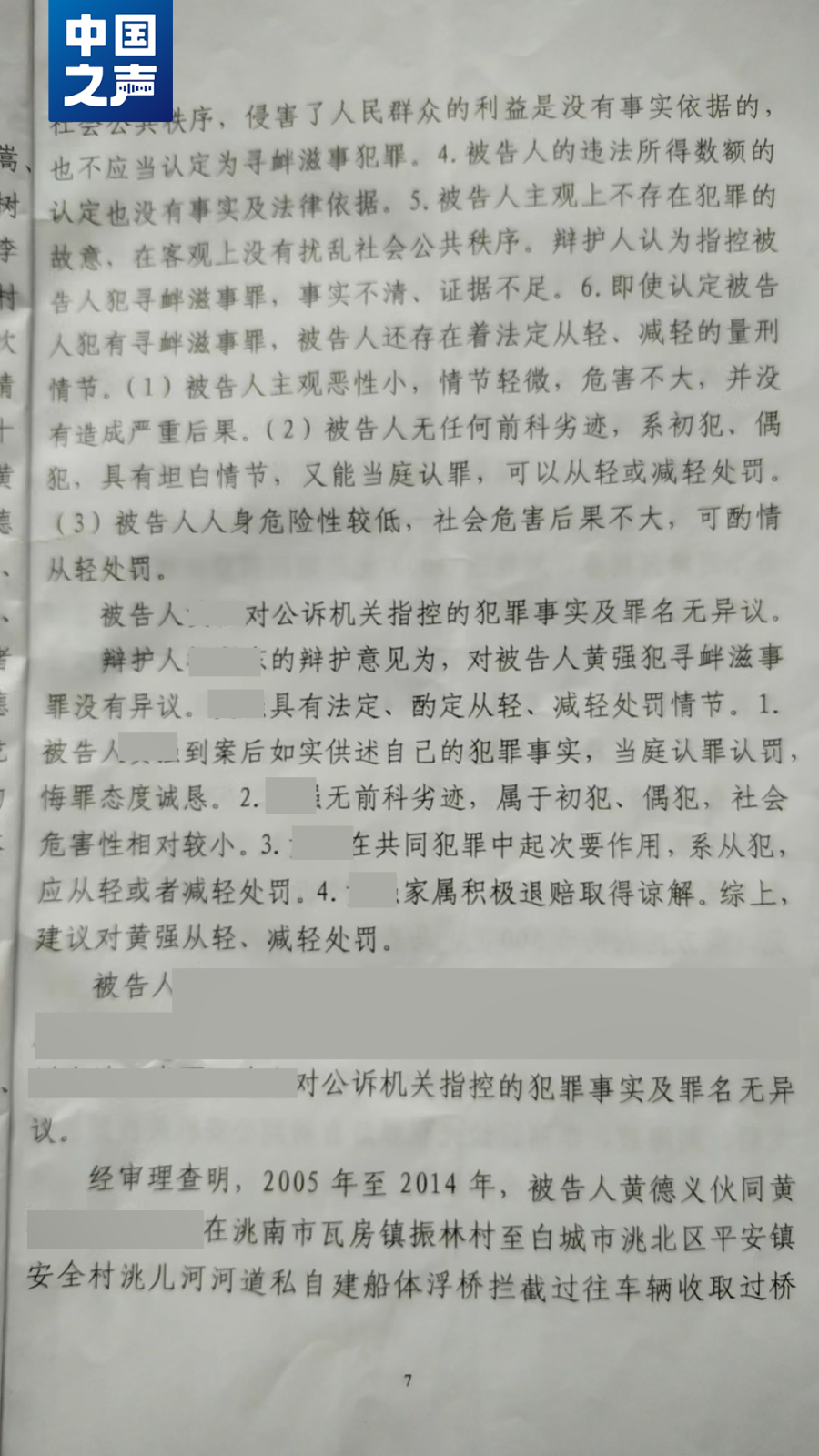 对于公诉机关的指控,黄德义的辩护人在该案一审开庭时表示,黄德义的行为,仅应当受行政法律、法规的调整。黄德义建桥、收费,以此认定扰乱社会公共秩序,侵害了人民群众的利益是没有事实依据的,不应当认定为寻衅滋事罪。黄德义主观上不存在犯罪的故意,在客观上没有扰乱社会公共秩序,指控黄德义犯寻衅滋事罪的事实不清,证据不足。2019年12月31日,洮南市法院做出一审判决。法院认定,黄德义及其他人员于2005年至2014年搭建船体浮桥收取过桥费;2014年至2018年搭建固定浮桥,黄德义组织排班并制定收费标准,小车5元大车10元,拦截过往车辆收取过桥费、过路费总计52950元,其行为构成寻衅滋事罪,判处黄德义有期徒刑两年,缓刑两年,其他17人也分别被判刑。