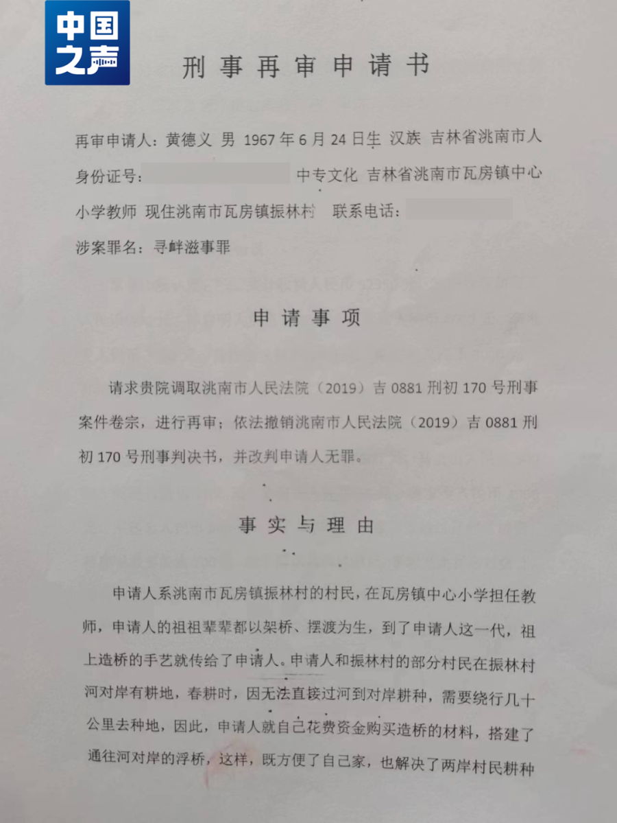 今年3月31日,黄德义的申诉被洮南市法院驳回,理由是法院认为,其在未经有关部门批准的情况下,私自建桥拦截过往车辆收费,且受到多次行政处罚的情况下仍拒不改正,情节恶劣,构成寻衅滋事罪的犯罪事实。申诉不符合相关法律规定,应予驳回。