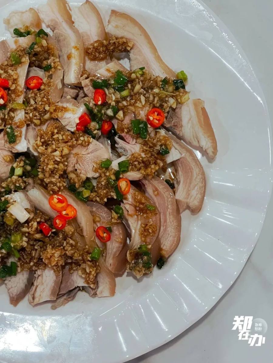 配以花椒、葱姜蒜等调味料