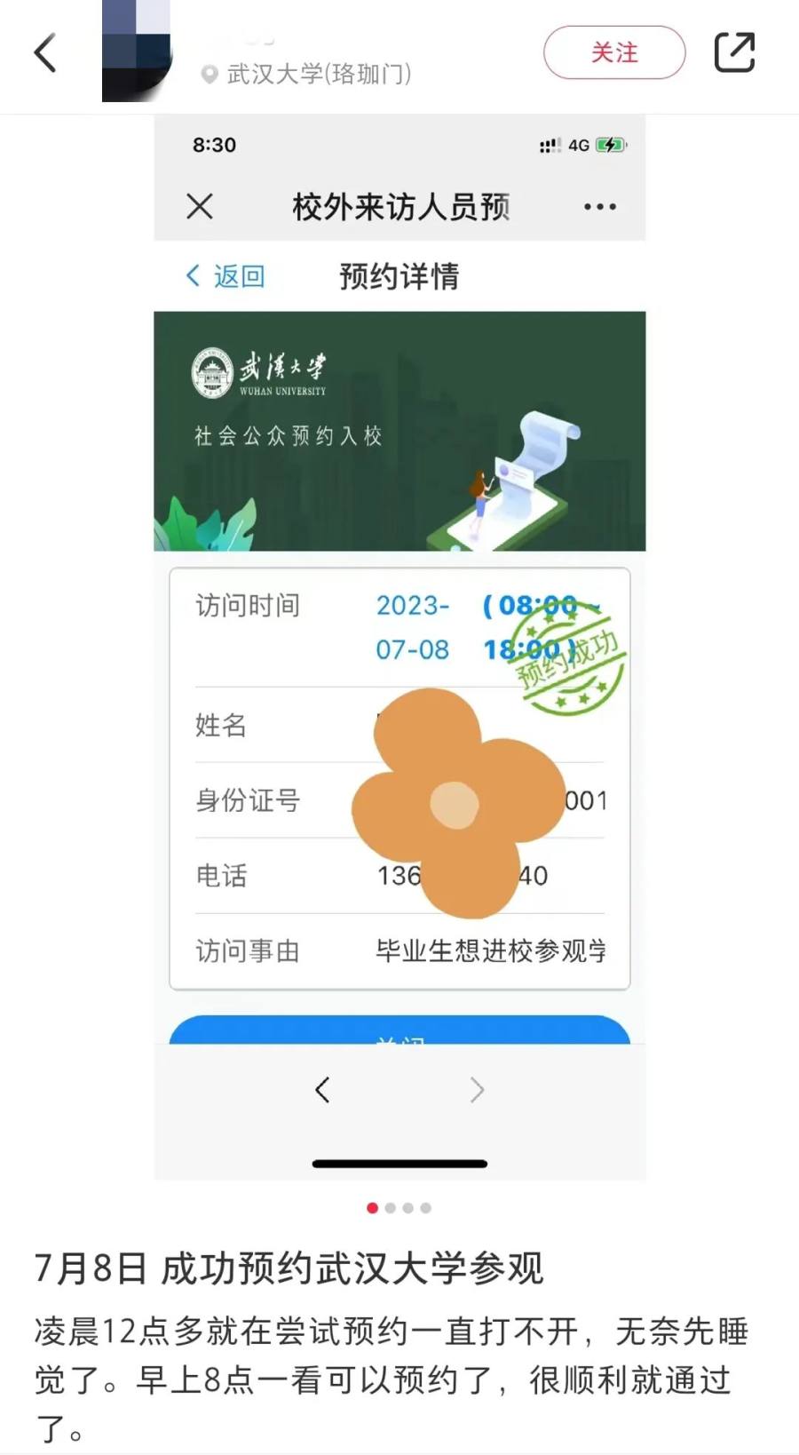 7月8日,两所高校线上预约通道正式开启,凌晨开始就有网友在线预约武汉大学今天的参观名额。