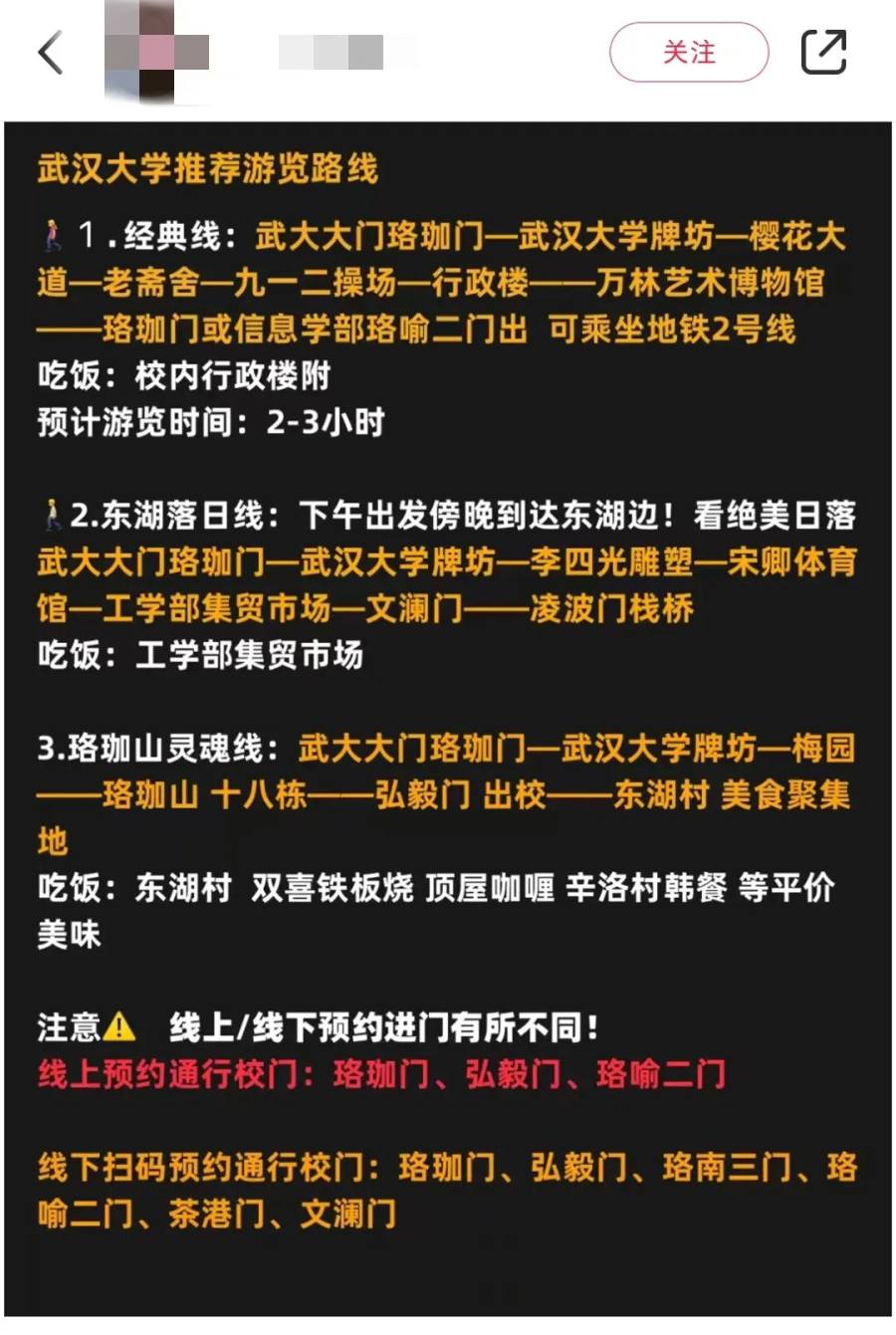 还有热心网友做了武大参观路线攻略。